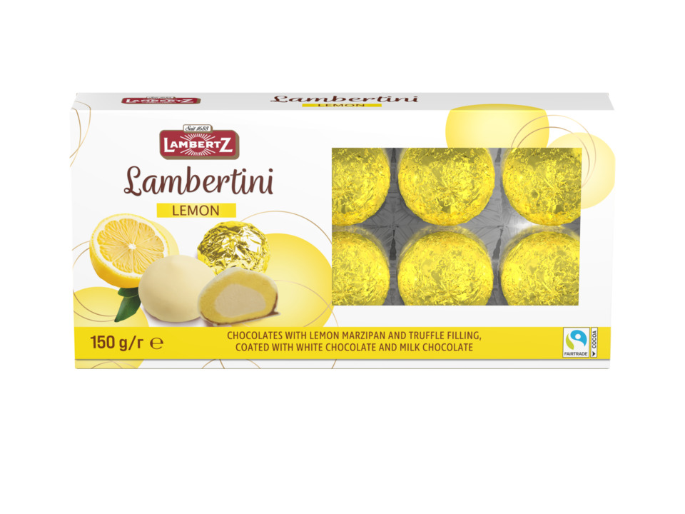 Praliny z nadzieniem cytrynowo – marcepanowym i truflami w białej czekoladzie.